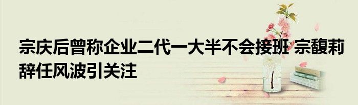 宗庆后曾称企业二代一大半不会接班 宗馥莉辞任风波引关注