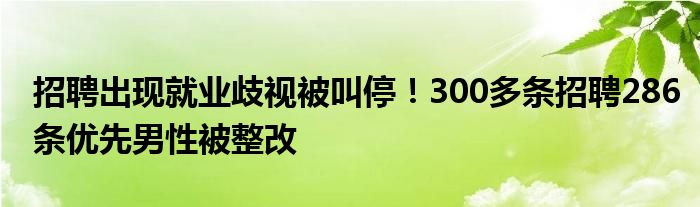 招聘出现就业歧视被叫停!300多条招聘286条优先男性被整改