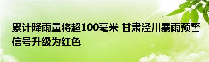 累计降雨量将超100毫米 甘肃泾川暴雨预警信号升级为红色