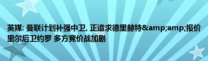 英媒: 曼联计划补强中卫, 正追求德里赫特&报价里尔后卫约罗 多方竞价战加剧