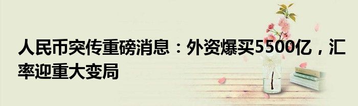 人民币突传重磅消息:外资爆买5500亿,汇率迎重大变局