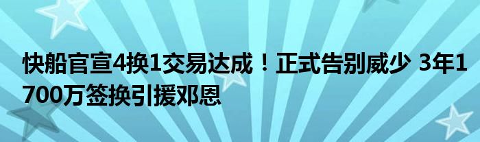 快船官宣4换1交易达成!正式告别威少 3年1700万签换引援邓恩