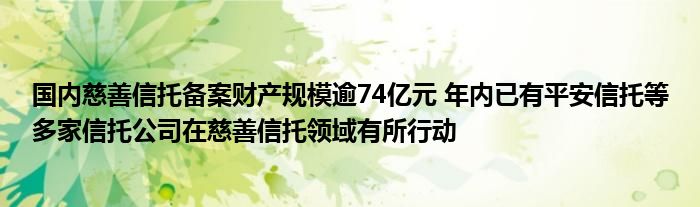 国内慈善信托备案财产规模逾74亿元 年内已有平安信托等多家信托公司在慈善信托领域有所行动
