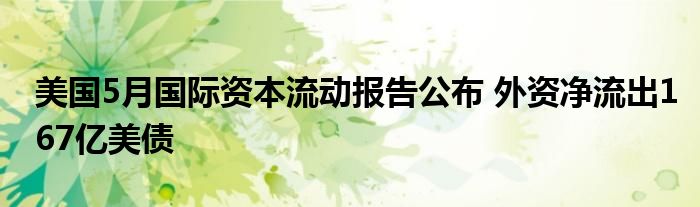 美国5月国际资本流动报告公布 外资净流出167亿美债