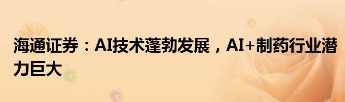 海通证券:AI技术蓬勃发展,AI+制药行业潜力巨大