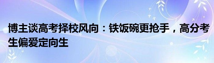 博主谈高考择校风向:铁饭碗更抢手,高分考生偏爱定向生