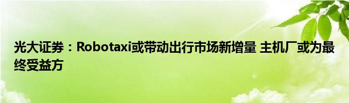 光大证券:Robotaxi或带动出行市场新增量 主机厂或为最终受益方