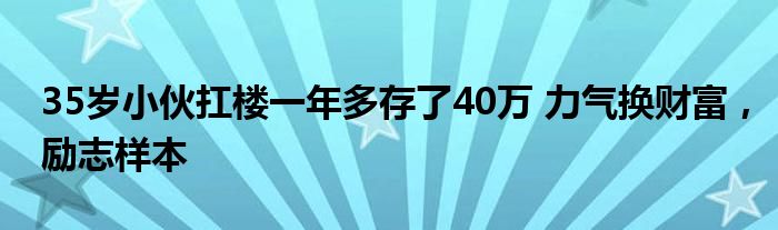 35岁小伙扛楼一年多存了40万 力气换财富,励志样本