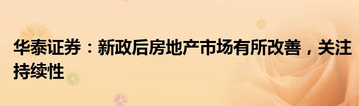 华泰证券:新政后房地产市场有所改善,关注持续性