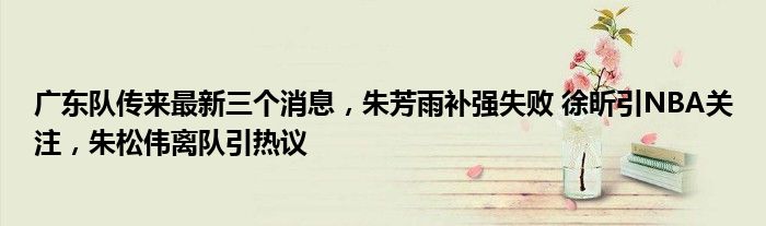 广东队传来最新三个消息,朱芳雨补强失败 徐昕引NBA关注,朱松伟离队引热议