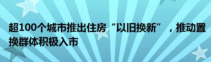 超100个城市推出住房“以旧换新”,推动置换群体积极入市