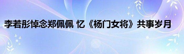 李若彤悼念郑佩佩 忆《杨门女将》共事岁月