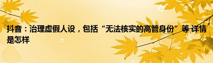 抖音:治理虚假人设,包括“无法核实的高管身份”等 详情是怎样