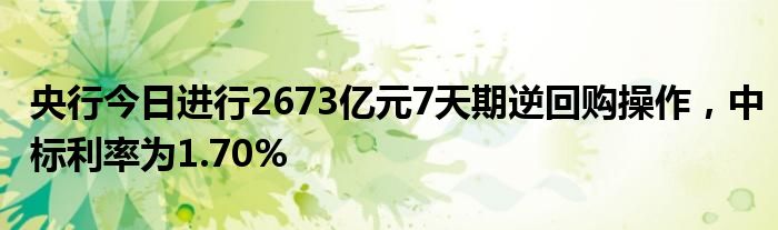 央行今日进行2673亿元7天期逆回购操作,中标利率为1.70%