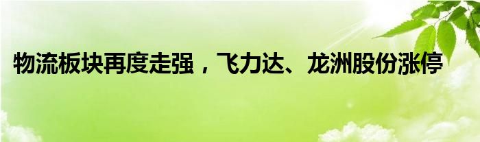 物流板块再度走强,飞力达、龙洲股份涨停,海晨股份、普路通、三羊马等上扬。