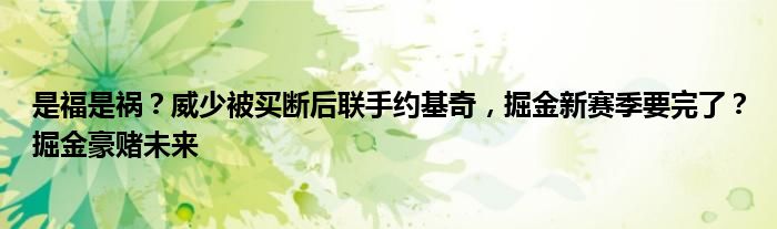 是福是祸?威少被买断后联手约基奇,掘金新赛季要完了?掘金豪赌未来