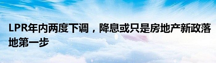 LPR年内两度下调,降息或只是房地产新政落地第一步