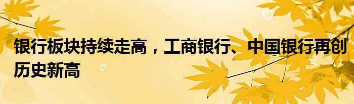 银行板块持续走高,工商银行、中国银行再创历史新高