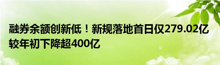 融券余额创新低!新规落地首日仅279.02亿 较年初下降超400亿