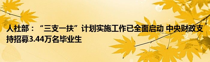 人社部:“三支一扶”计划实施工作已全面启动 中央财政支持招募3.44万名毕业生