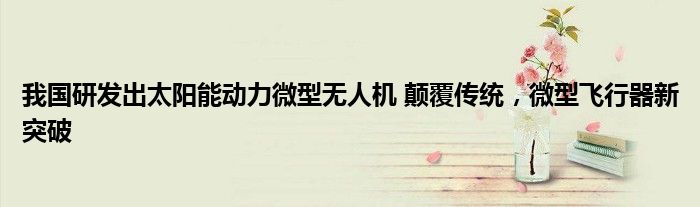 我国研发出太阳能动力微型无人机 颠覆传统,微型飞行器新突破