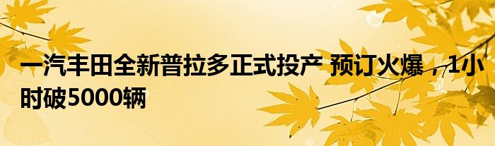 一汽丰田全新普拉多正式投产 预订火爆,1小时破5000辆