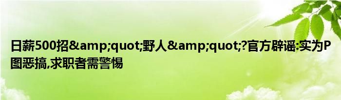 日薪500招"野人"?官方辟谣:实为P图恶搞,求职者需警惕