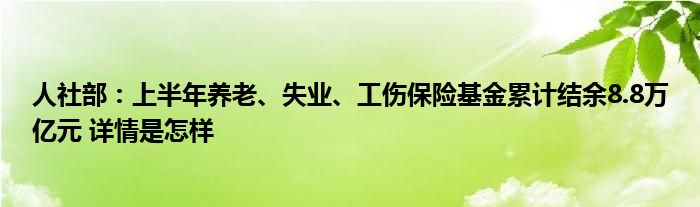 【人社部:上半年养老、失业、工伤保险基金累计结余8.8万亿元】大家可以一起来了解一下这是什么情况!