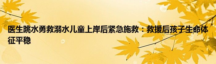 医生跳水勇救溺水儿童上岸后紧急施救:救援后孩子生命体征平稳