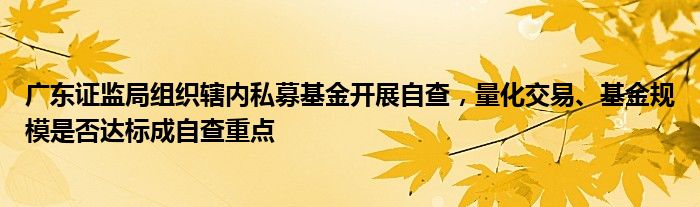 广东证监局组织辖内私募基金开展自查,量化交易、基金规模是否达标成自查重点