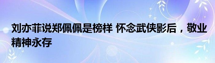 刘亦菲说郑佩佩是榜样 怀念武侠影后,敬业精神永存