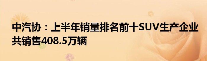 中汽协:上半年销量排名前十SUV生产企业共销售408.5万辆