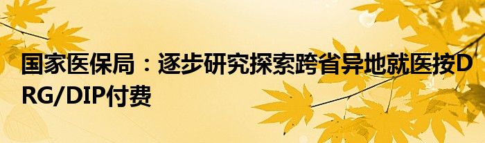 国家医保局:逐步研究探索跨省异地就医按DRG/DIP付费