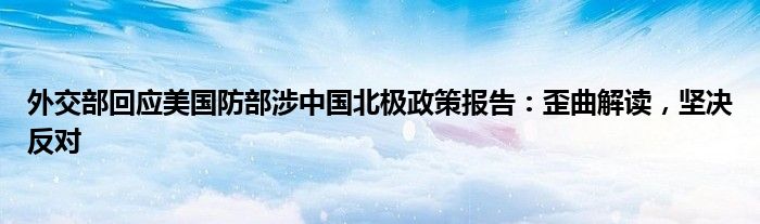 外交部回应美国防部涉中国北极政策报告:歪曲解读,坚决反对