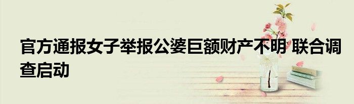 官方通报女子举报公婆巨额财产不明 联合调查启动