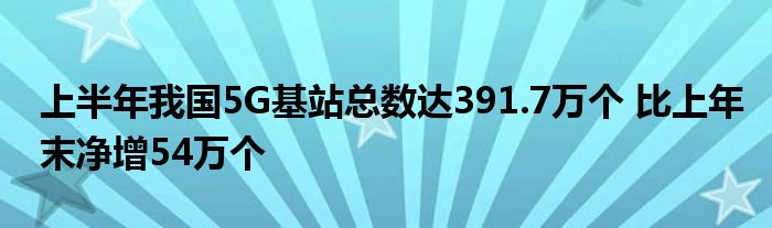 上半年我国5G基站总数达391.7万个 比上年末净增54万个