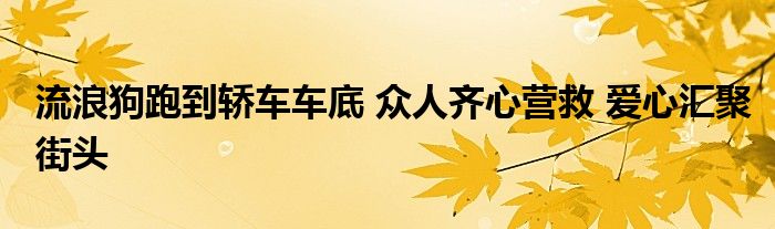流浪狗跑到轿车车底 众人齐心营救 爱心汇聚街头