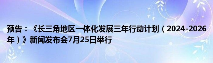 预告:《长三角地区一体化发展三年行动计划(2024-2026年)》新闻发布会7月25日举行