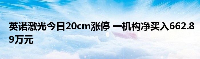 英诺激光今日20cm涨停 一机构净买入662.89万元