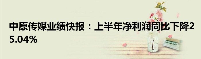 中原传媒业绩快报:上半年净利润同比下降25.04%