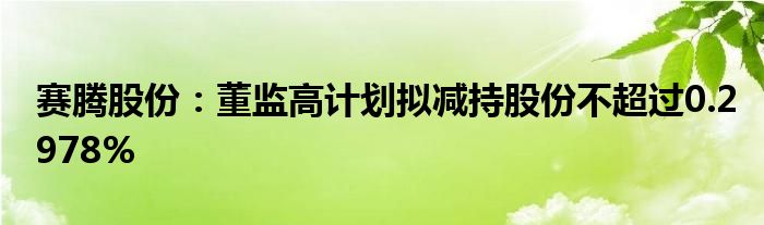 赛腾股份:董监高计划拟减持股份不超过0.2978%