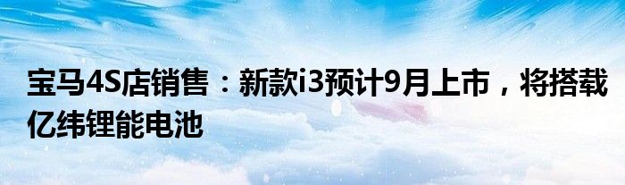 宝马4S店销售:新款i3预计9月上市,将搭载亿纬锂能电池