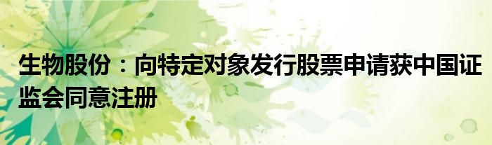生物股份:向特定对象发行股票申请获中国证监会同意注册