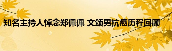 知名主持人悼念郑佩佩 文颂男抗癌历程回顾