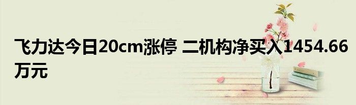 飞力达今日20cm涨停 二机构净买入1454.66万元