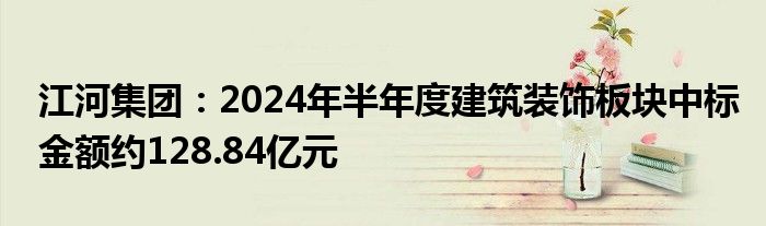 江河集团:2024年半年度建筑装饰板块中标金额约128.84亿元