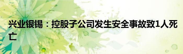 兴业银锡:控股子公司发生安全事故致1人死亡