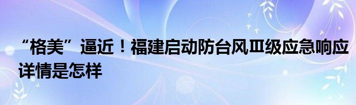 【“格美”逼近!福建启动防台风Ⅲ级应急响应】大家可以一起来了解一下这是什么情况!