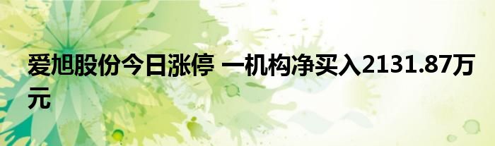 爱旭股份今日涨停 一机构净买入2131.87万元