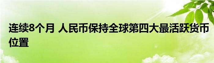 连续8个月 人民币保持全球第四大最活跃货币位置